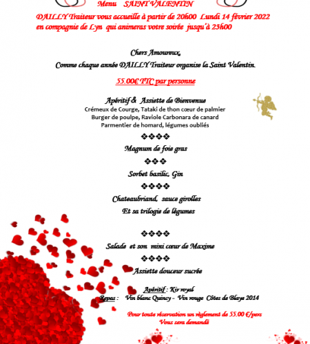 Soirée pour les amoureux, le Lundi 14 février à partir de 20h00 à Isneauville, habitués ou nouveaux clients, n'hésitez pas à venir célébrer la Saint-Valentin