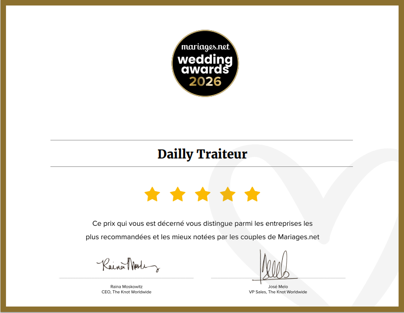 Cette récompense est avant tout la vôtre : merci à tous nos mariés pour leur confiance, leurs avis et ces moments inoubliables partagés à leurs côtés.